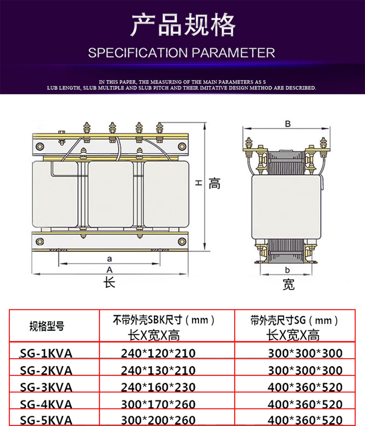SG系列三相干式隔离变压器广泛适用于交流50Hz至60Hz,电压500V以下的电路中