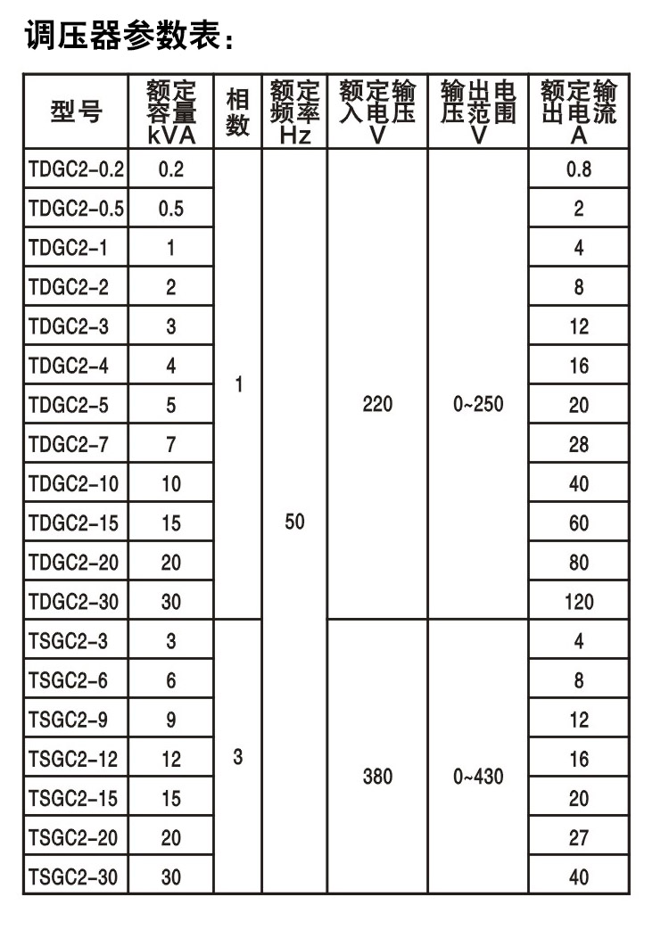 4、使用时应经常注意输出电流不超过额定值,如有短时负荷,不能超过表2的的规定,否则易使调压器寿命降低甚至烧毁。